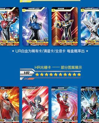 奥特曼卡的销售策略更为流行,即根据氪金的数量获得不同的稀有卡,价格从低至2元/包到高至10元/包。7张R卡,1张SR或SSR卡,每包2元。昂贵的卡片则不同。10元的奥特曼卡可以很容易地与SSR和UR卡一起发行,而r级卡只能发行三到四张卡。