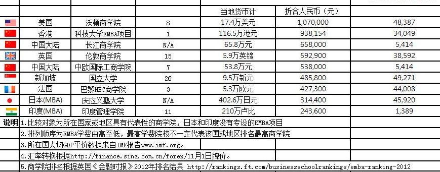 目前中国EMBA学费最高的长江商学院EMBA学费是65.8万元人民币。长江商学院EMBA学费从2009年的52.9万元,经历了58.8万、62.8万、65.8万、68.8万等历程,现在的学费更是最初的2倍多。因此,有人将中国EMBA中的“E”戏称为“贵”(expensive)。