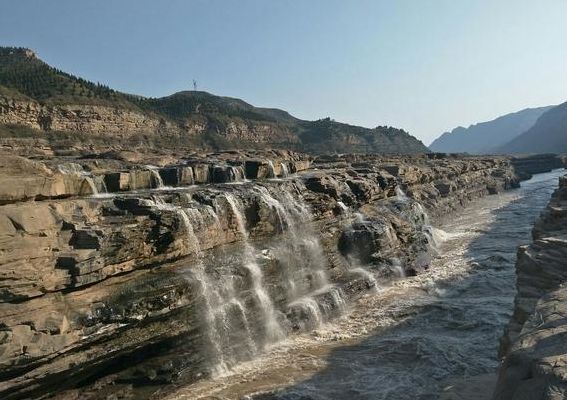 6、黄河上游瀑布300米宽,不到500米的长距离压缩到20-30米。1000立方米/秒的河水从20多米高的悬崖上倾泻而下,形成了一壶丰收黄河千里。