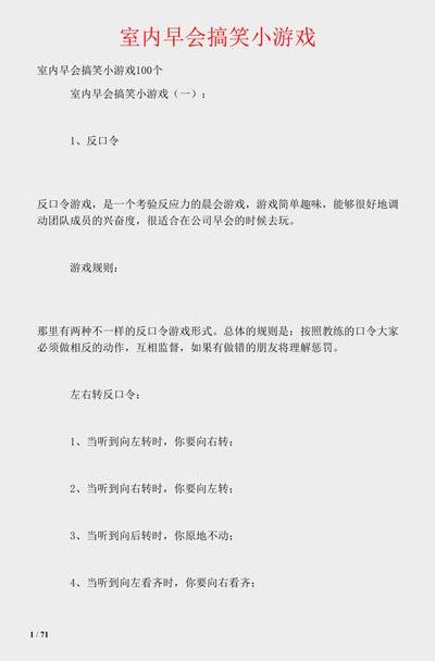 公司早会游戏:挑战数数字 、官兵捉贼、开火车、下一个是谁、夹乒乓球。挑战数数字 人数:5-10人 。道具:无 。游戏规则: 所有人围成一圈,需要共同完成一件任务——数数。