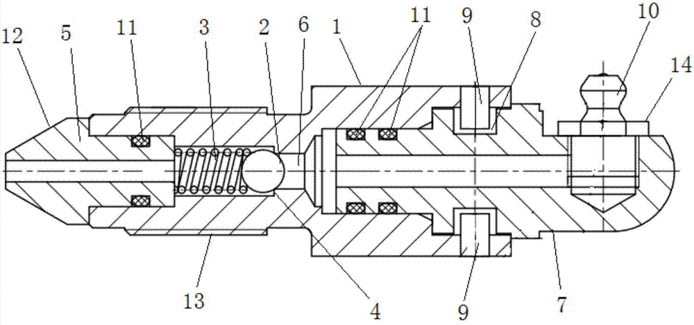 普通单向阀 普通单向阀的作用,是使油液只能沿一个方向流动,不许它反向倒流。图(a)所示是一种管式普通单向阀的结构。