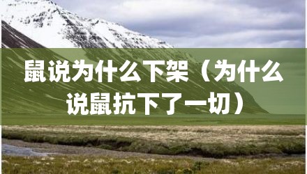 现在给大家讲讲鼠说为什么下架,以及为什么说鼠抗下了一切对应的知识点,如果现在能碰巧解决你面临的问题,我也是很开心,希望对各位朋友有所帮助。