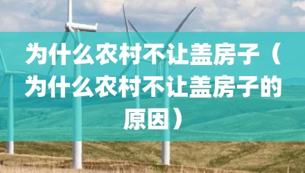 现在给大家讲讲为什么农村不让盖房子,以及为什么农村不让盖房子的原因对应的知识点,如果现在能碰巧解决你面临的问题,我也是很开心,希望对各位朋友有所帮助。