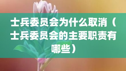 现在给大家讲讲士兵委员会为什么取消,以及士兵委员会的主要职责有哪些对应的知识点,如果现在能碰巧解决你面临的问题,我也是很开心,希望对各位朋友有所帮助。