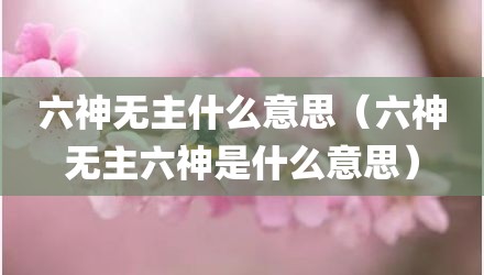 现在给大家讲讲六神无主什么意思,以及六神无主六神是什么意思对应的知识点,如果现在能碰巧解决你面临的问题,我也是很开心,希望对各位朋友有所帮助。