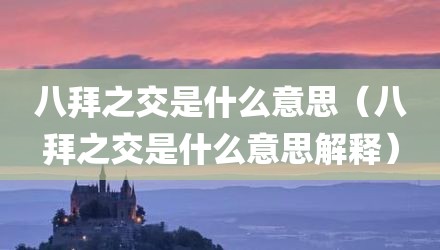 【解释】:八拜:原指古代世交子弟谒见长辈的礼节;交:交情,友谊。旧时指异姓结拜兄弟的为“八拜之交”。【出自】:宋·邵伯温《闻见后录》:“丰稷谒潞公,公着道出,语之曰:汝父吾客也,只八拜。稷不得已,只拜之。