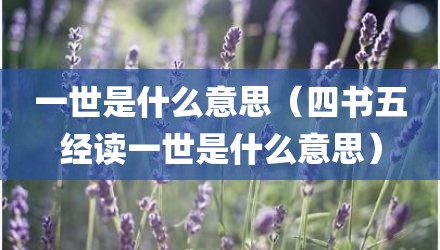 现在给大家讲讲一世是什么意思,以及四书五经读一世是什么意思对应的知识点,如果现在能碰巧解决你面临的问题,我也是很开心,希望对各位朋友有所帮助。