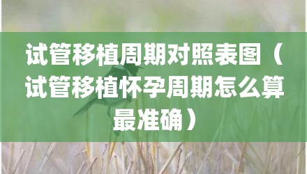 现在给大家讲讲试管移植周期对照表图,以及试管移植怀孕周期怎么算最准确对应的知识点,如果现在能碰巧解决你面临的问题,我也是很开心,希望对各位朋友有所帮助。