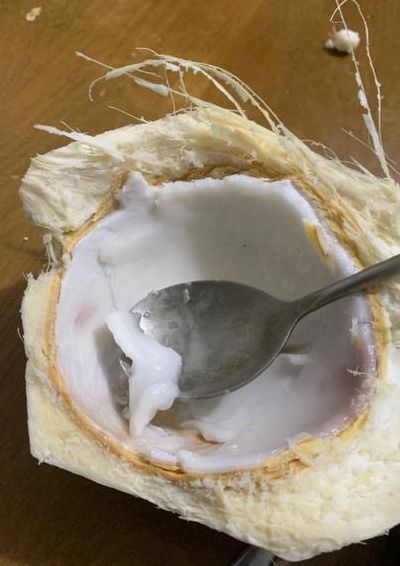 生吃椰肉:喝椰子水要选在中午时间段,那会椰汁饱满,清香甘甜。吃椰肉要选用稍微嫩点的椰子,嫩椰子果肉香甜顺滑,不会有老椰子肉带硬带粉的口感。喝完椰汁后可以将椰子砍开两半,拿勺就可以将里面的椰肉捞起,滑滑嫩嫩的椰肉就可以享用了。