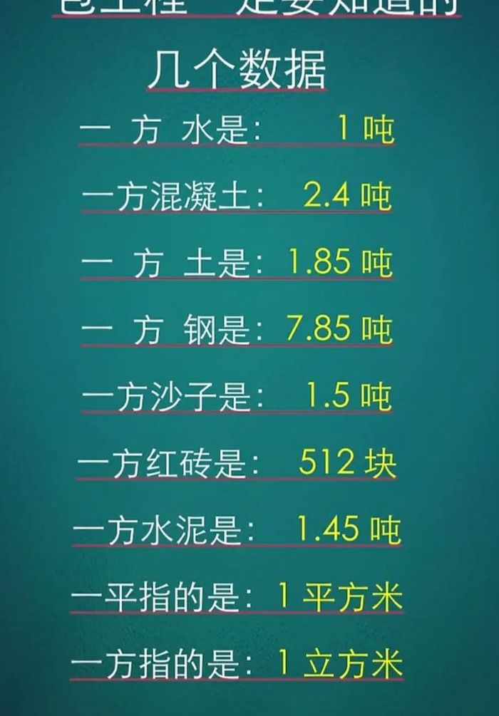 1、方与吨的换算关系是:1方等于4吨。这个换算基于沙子的密度,通常取值为1400千克/立方米。 在建筑行业,沙子的使用量通常按照堆积密度来计算,该密度范围在1350到1450千克/立方米。因此,一方沙子的质量大约在35到45吨之间。 质量的单位“吨”在公制中等于1000公斤。