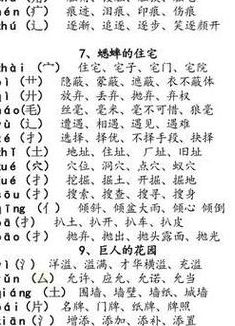 6、竹字的组词: 竹叶、竹席、竹桥、竹竿、竹签、竹篙、文竹、腐竹、竹马、竹编、丝竹、竹雕、箭竹、竹黄、竹排、南竹、竹篱、湘竹、竹器、竹帛。