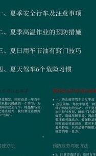 2、那么,夏季安全行车需要注意的事项有哪些呢?出行前检查好胎压 跑长途的时候,胎压最好按辆指点的胎压打气。千万不能将胎压设置得过高,因为本来路面温度就高,轮胎长时间与地面摩擦,胎压会越来越高,胎压过高容易爆胎。
