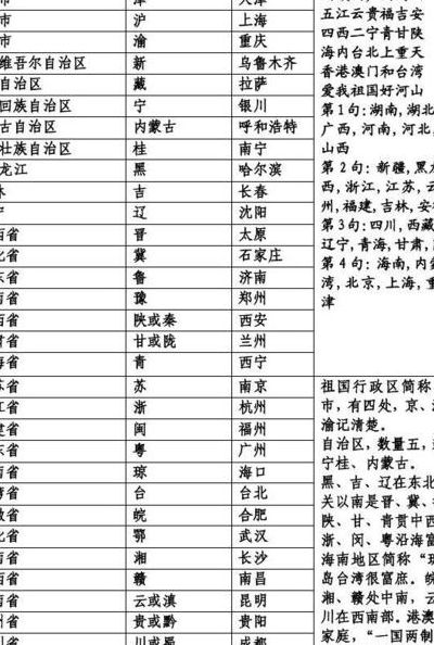 我国行政区域划分:目前中国有34个省级行政区,包括23个省、5个自治区、4个直辖市、2个特别行政区。在历史上和习惯上,各省级行政区都有简称。省级人民政府驻地称省会(首府),中央人民政府所在地是首都。