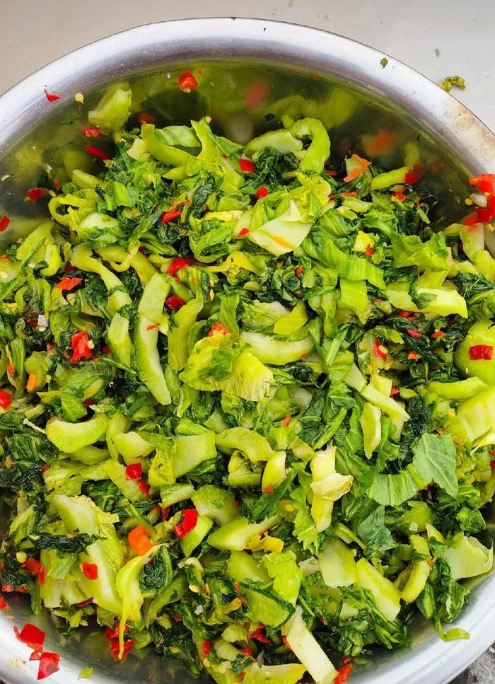 2、准备大芥菜 首先,要准备适量的大芥菜,并用水将大芥菜清洗干净。这是腌制盐菜的第一步,确保大芥菜无杂质,以避免在腌制过程中出现变质等问题。 晾干水分 将清洗干净的大芥菜放在通风的地方,晾干其表面的水分。