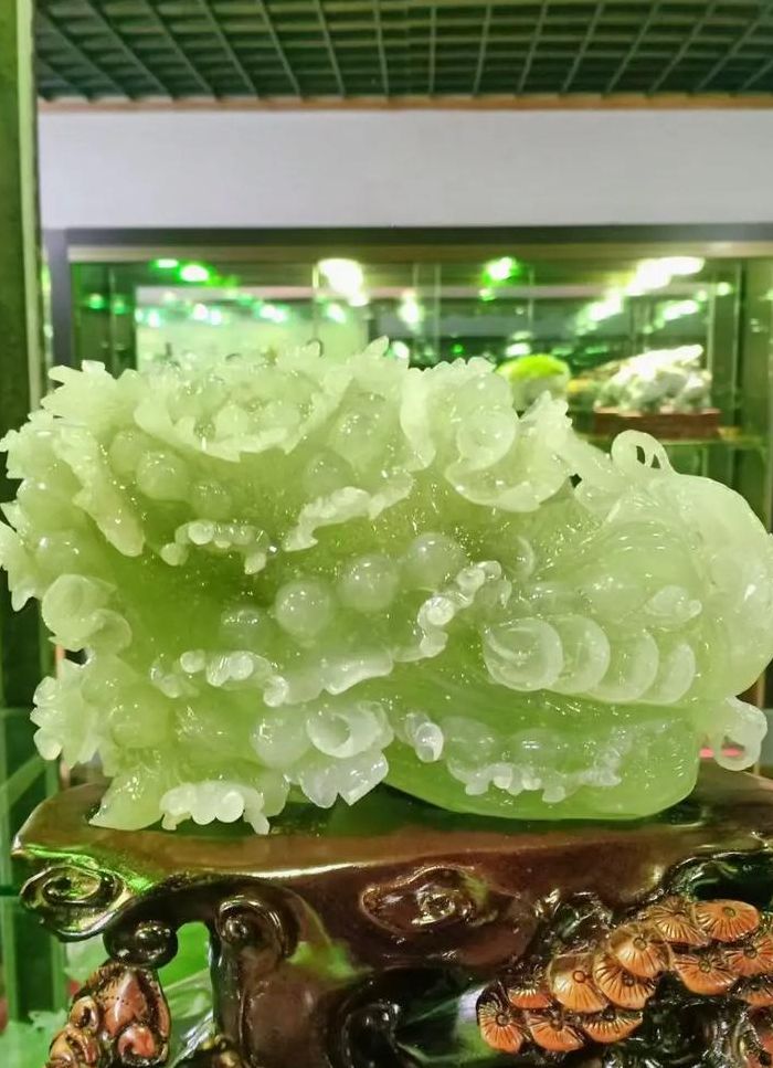 岫玉是中国四大名玉之一,大体分两类,一类是老玉(亦称河磨玉),其质地朴实、凝重、色泽深绿,是一种珍贵的璞玉。另一类是软玉,其质地坚实而温润,细腻而圆融,多呈绿色,而其中以纯白、金黄两种颜色是罕世之珍品。