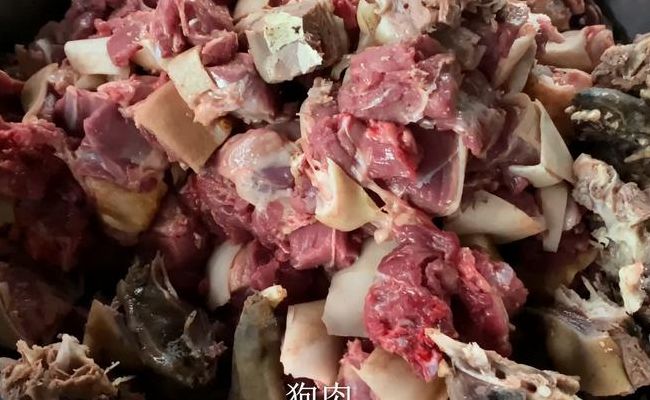 狗肉去净骨,烙去毛,下入冷水锅煮沸,捞出后用清水洗去血沫,再放入砂锅,加入拍破的葱姜、桂皮、干天椒、料酒和水,焖煮至五成烂时取出。原汤保存,去掉葱姜、桂皮和干天椒。