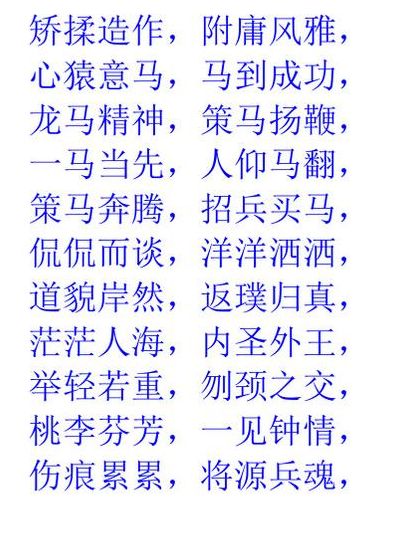 带有马字的四字词语有哪些 猴年马月 猴、马:十二生肖之一。 泛指未来的岁月 练兵秣马 训练士兵,喂饱战马。