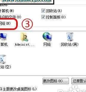 4、然后进入桌面图标设置窗口,勾选“桌面图标”中的【网络】,之后点击【确定】,如图。 之后我们返回到电脑桌面,就可以看到网络的快捷方式,也就是网上邻居,如图。方法/步骤2 我们在桌面上点击计算机,如图。