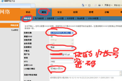 本地连接IP地址设置成和光猫IP一个网段。输入光猫的IP地址并进入。点击网络,宽带设置,设置宽带上网的各种参数。选择WLAN配置,点击基本设置,启用无线功能,并对参数进行设置。