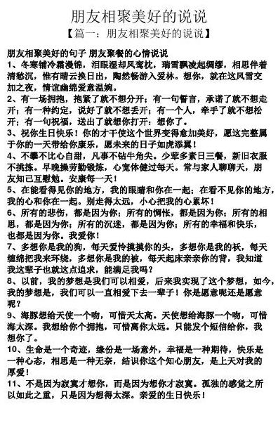 2、适合朋友聚会发的朋友圈短句,我主要整理了几点,有开心,浪漫,内涵文案,仅供参考~ 开心文案 每次回来必须和大家聚聚,开心到鱼尾纹蹭蹭数量往上长。 姐妹们的聚会。大家要幸福啊!永远爱你们啊。