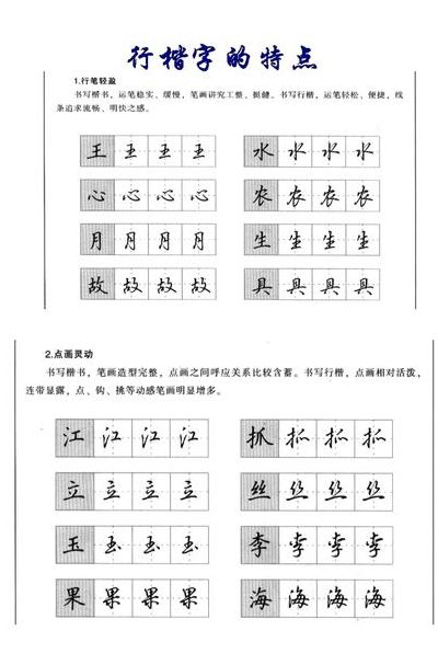 1、行楷练字技巧有连写笔画、引用草书、简化字形、改变笔顺、略带斜势,详细图解如下:连写笔画:写行楷书,往往将相邻的笔画连写,以方便书写。引用草书:为增强行书的流动笔意,注重牵丝连带,调节行气,也可以把人们比较熟悉的草字直接串写在行楷书中。