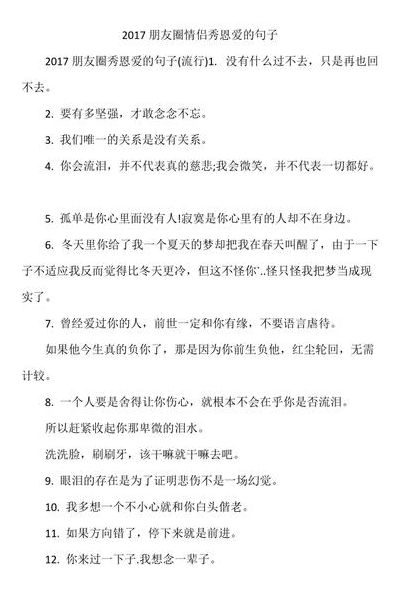 1、、我觉得你跟天上的星星一样好看,可是你和星星的区别是,星星在天上,而你在我心里。 2021情侣说说秀恩爱短句 在朋友圈撒狗粮的情侣说说 真正的爱情,要懂得珍惜。一辈子只爱一个人,并不丢人。 整个世界,我最爱的地方就是你的左右。 希望有一天,能陪你去你的高中。