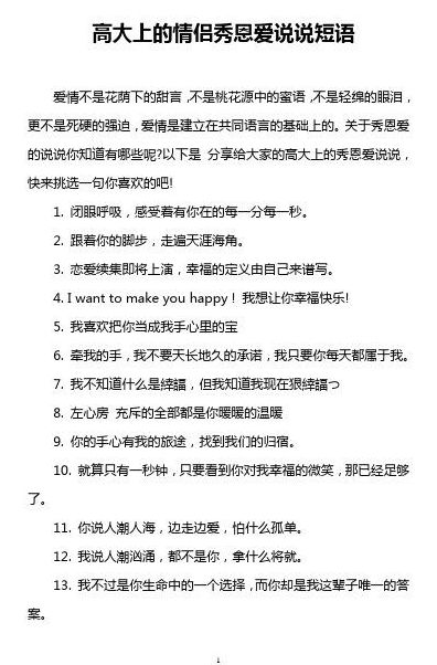 秀恩爱甜到炸的高级情话集合五十五句 秀恩爱甜到炸的高级情话【篇一】 故知情,写满离恨,谁饮下无知,不知何处是月明,笔连意,墨哀情,斜阳暮西归,谁在荒凉的余辉下,凄然着昨日的誓言,文笔赋下是谁的凌乱,那寂寞的天空,是不是依然不见一丝云彩的飘过。风铃的哀怨,我的寂寞红尘,闯进了你月下霓裳的思念。