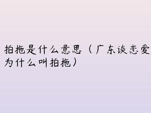 2、“拍拖”是广东的一句方言,意思是男女之间谈恋爱,手牵手散步或相随而行。“拍拖”原为广东珠江口一带航运俗语,珠江口航运发达,通常大船载货并拖一艘小船,主航道大拖小;近岸时,大船吃水深,难以靠岸,此时小船便卸货上岸,来回相依。后来就延伸成用“拍拖”来形容男女之间美好的恋爱。