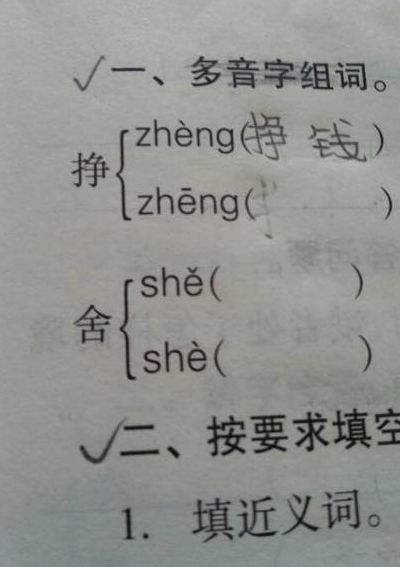 3、挣【zhēng 】①挣持:勉强支持。②挣扎:用力支撑或摆脱。③挣达:漂亮的。④挣挞:漂亮的。⑤挣命:为活命而挣扎。挣 【zhèng】①挣开:用力摆脱。②挣下基业:用力获取;赚取。③挣钱:做工作赚钱。④挣勤:漂亮的嫖客。⑤挣揣;挣座:用力获取。⑥挣挣;挣痴:发呆,发怔的样子。