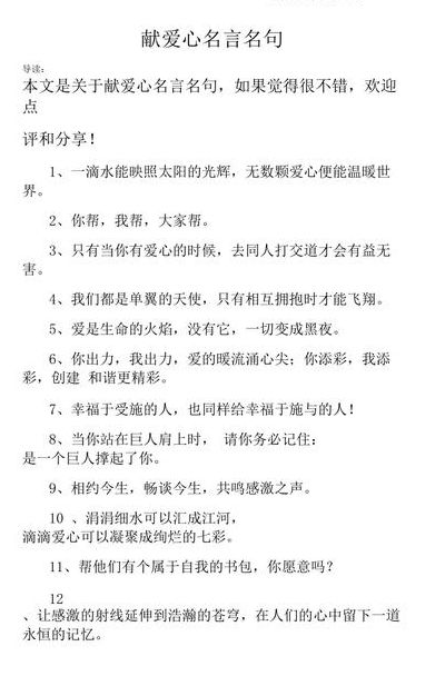 1、用爱心汇聚力量,让公益温暖人间。 关爱他人,从我做起,让爱心传递,让生命绽放。 用心关爱,让每个生命都充满阳光。 一份爱心,一份力量,共创美好未来。 小善举,大爱心,让世界因你而美好。 助力公益,传递温暖,共建和谐社会。 关爱无限,爱心永恒,携手共建美好家园。