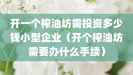 现在给大家讲讲开一个榨油坊需投资多少钱小型企业,以及开个榨油坊需要办什么手续对应的知识点,如果现在能碰巧解决你面临的问题,我也是很开心,希望对各位朋友有所帮助。