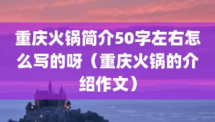 现在给大家讲讲重庆火锅简介50字左右怎么写的呀,以及重庆火锅的介绍作文对应的知识点,如果现在能碰巧解决你面临的问题,我也是很开心,希望对各位朋友有所帮助。