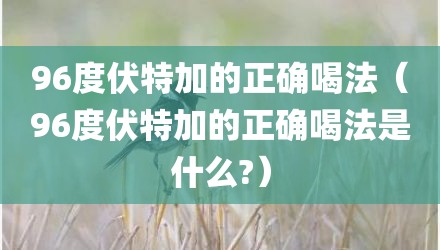96度伏特加的正确喝法:冷冻后纯饮,或加入其他饮料调制成鸡尾酒。 96度伏特加是一款酒精度极高的烈酒,原产于波兰,以其无色无味、口感纯净、酒精度高而著称。 由于其酒精度过高,直接饮用可能会带来强烈的刺激感,因此不建议直接常温饮用。