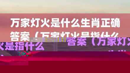 现在给大家讲讲万家灯火是什么生肖正确答案,以及万家灯火是指什么生肖?对应的知识点,如果现在能碰巧解决你面临的问题,我也是很开心,希望对各位朋友有所帮助。