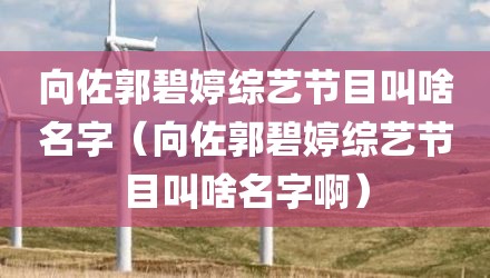 现在给大家讲讲向佐郭碧婷综艺节目叫啥名字,以及向佐郭碧婷综艺节目叫啥名字啊对应的知识点,如果现在能碰巧解决你面临的问题,我也是很开心,希望对各位朋友有所帮助。