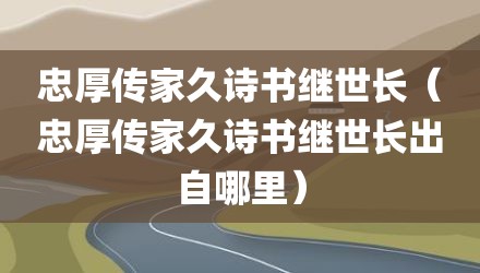 诗书继世长:认真读书,学习前人优秀品质,可以使家族长久地发展下去。忠厚:指忠诚,厚道。传家:传给子孙或子孙世代相传。诗书:泛指书籍。此处指把读书,学习前人优秀品质当作重要事情的人家。继世:继承先世。