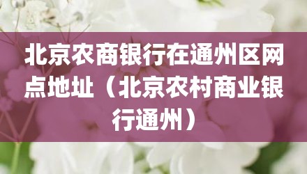 现在给大家讲讲北京农商银行在通州区网点地址,以及北京农村商业银行通州对应的知识点,如果现在能碰巧解决你面临的问题,我也是很开心,希望对各位朋友有所帮助。