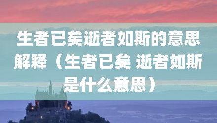 现在给大家讲讲生者已矣逝者如斯的意思解释,以及生者已矣 逝者如斯是什么意思对应的知识点,如果现在能碰巧解决你面临的问题,我也是很开心,希望对各位朋友有所帮助。