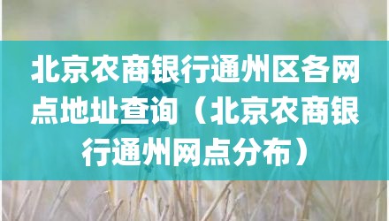 现在给大家讲讲北京农商银行通州区各网点地址查询,以及北京农商银行通州网点分布对应的知识点,如果现在能碰巧解决你面临的问题,我也是很开心,希望对各位朋友有所帮助。