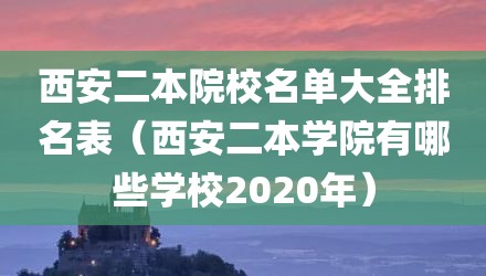 现在给大家讲讲西安二本院校名单大全排名表,以及西安二本学院有哪些学校2020年对应的知识点,如果现在能碰巧解决你面临的问题,我也是很开心,希望对各位朋友有所帮助。