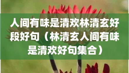 现在给大家讲讲人间有味是清欢林清玄好段好句,以及林清玄人间有味是清欢好句集合对应的知识点,如果现在能碰巧解决你面临的问题,我也是很开心,希望对各位朋友有所帮助。