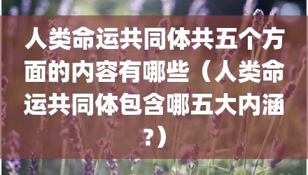 现在给大家讲讲人类命运共同体共五个方面的内容有哪些,以及人类命运共同体包含哪五大内涵?对应的知识点,如果现在能碰巧解决你面临的问题,我也是很开心,希望对各位朋友有所帮助。
