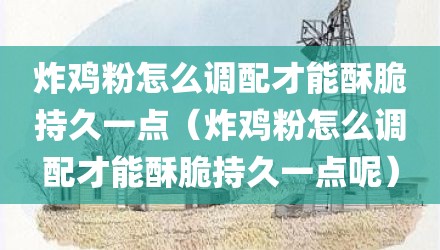 现在给大家讲讲炸鸡粉怎么调配才能酥脆持久一点,以及炸鸡粉怎么调配才能酥脆持久一点呢对应的知识点,如果现在能碰巧解决你面临的问题,我也是很开心,希望对各位朋友有所帮助。