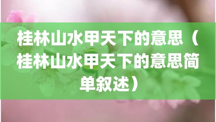 “桂林山水甲天下”是什么意思