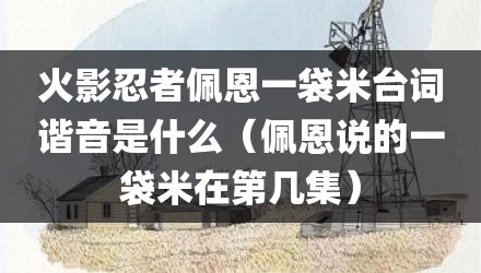 现在给大家讲讲火影忍者佩恩一袋米台词谐音是什么,以及佩恩说的一袋米在第几集对应的知识点,如果现在能碰巧解决你面临的问题,我也是很开心,希望对各位朋友有所帮助。