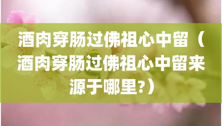 现在给大家讲讲酒肉穿肠过佛祖心中留,以及酒肉穿肠过佛祖心中留来源于哪里?对应的知识点,如果现在能碰巧解决你面临的问题,我也是很开心,希望对各位朋友有所帮助。