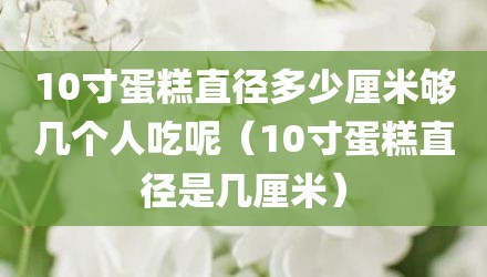 寸蛋糕的直径约为24厘米左右,加上外层奶油及装饰物等,直径会再增加1-2厘米或更多,因此10寸蛋糕直径约与A4纸长边的长度差不多,大概够5-8个人吃。相关内容:6寸(英寸)=124cm≈455克 适合2-4人左右食用,一 般于生日聚会、情人节、母亲节等。