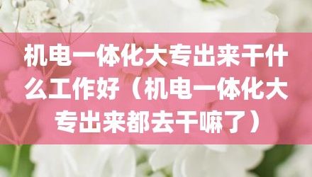 现在给大家讲讲机电一体化大专出来干什么工作好,以及机电一体化大专出来都去干嘛了对应的知识点,如果现在能碰巧解决你面临的问题,我也是很开心,希望对各位朋友有所帮助。