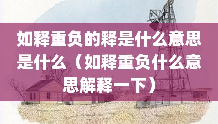 现在给大家讲讲如释重负的释是什么意思是什么,以及如释重负什么意思解释一下对应的知识点,如果现在能碰巧解决你面临的问题,我也是很开心,希望对各位朋友有所帮助。