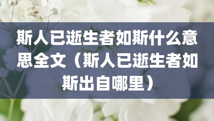 3、“斯人”指的是某个人,可以是亲人、朋友、伟人等。而“已逝”则表示这个人已经去世,不再人世。这句话表达了对逝去者的缅怀和纪念。 “生者如斯”的含义 “生者”指的是活着的人。而“如斯”则表示像原来的样子,继续生活。这句话鼓励生者要勇敢面对现实,继续前行,不让逝者担忧。